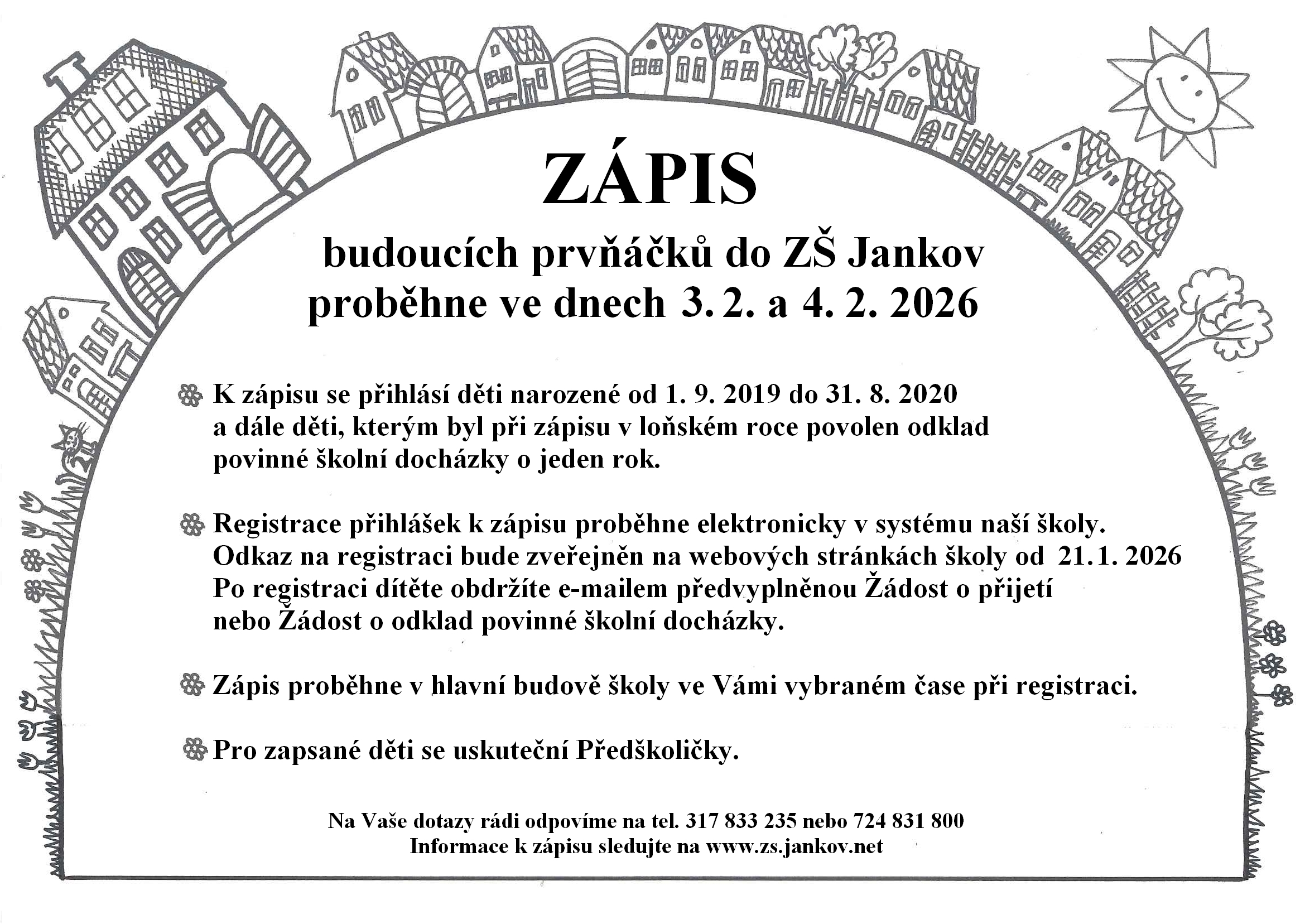 "Registrace přihlášek k zápisu zde:"